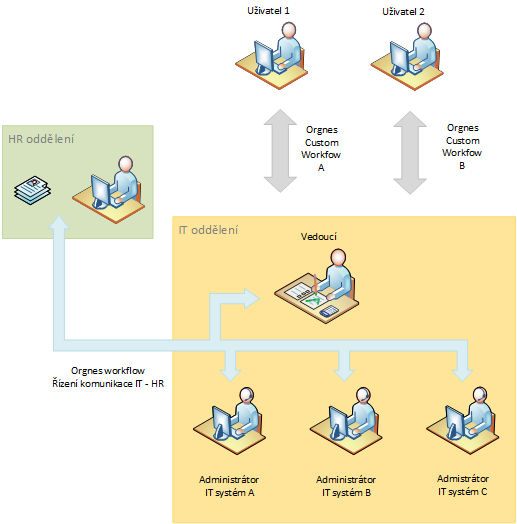 Řešení zjednodušuje zpracování požadavků HR oddělení na IT oddělení při přijetí nových zaměstnanců, jejich přeřazení či ukončení pracovního poměru.