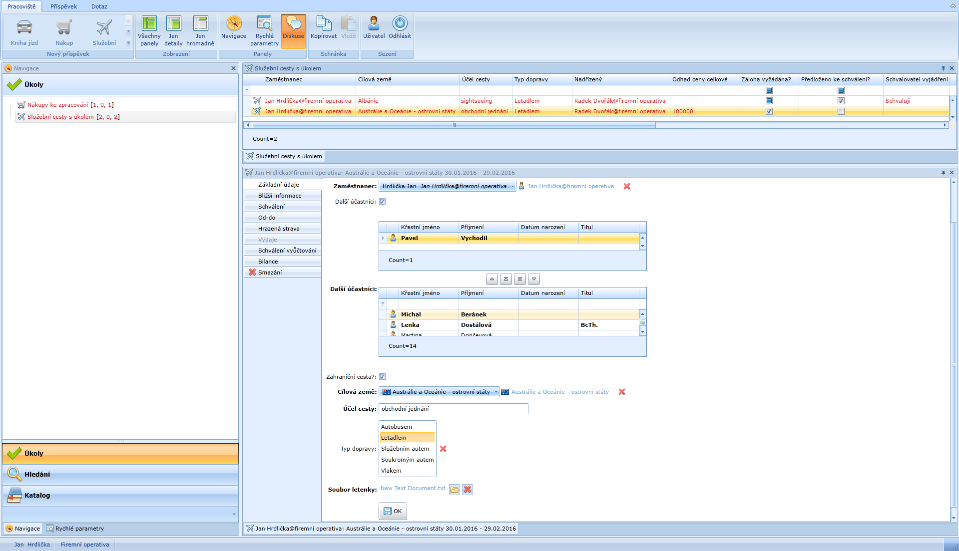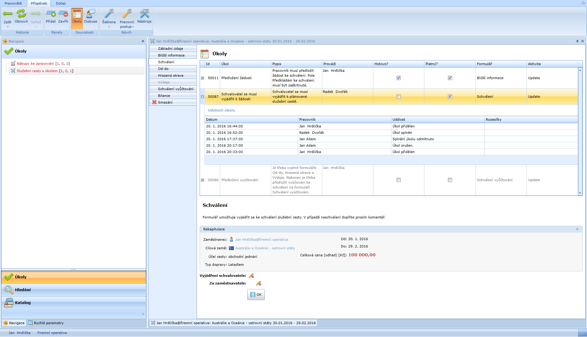 • zeleně – úkol přidělený díky zástupu. Jestliže aktuální uživatel zastupuje v nějaké oblasti jiného uživatele, jsou mu přidělovány v této oblasti úkoly zastupovaného.