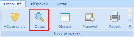 V galerii Nový příspěvek v pásu karet na záložce Pracoviště klikněte na ikonu Dotaz.