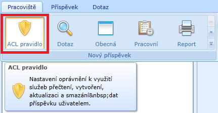 V galerii Nový příspěvek v pásu karet na záložce Pracoviště klikněte na ikonu ACL pravidlo.