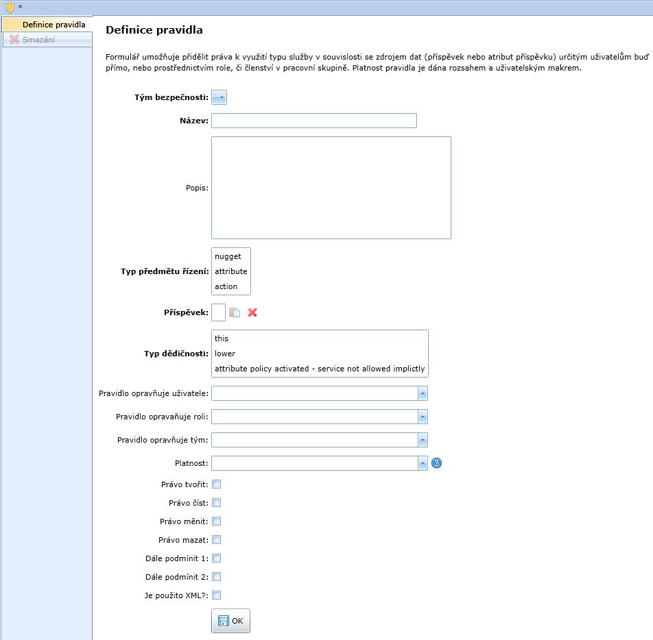 • Nugget – Vyberte, pokud se pravidlo týká celého příspěvku (CRUD).