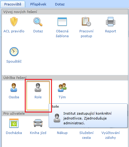 Role představuje typ užití systému. Zjednodušuje mechanismus administrace, protože nastavení je definováno pro role. Uživatelům se pak role přidělují a tím