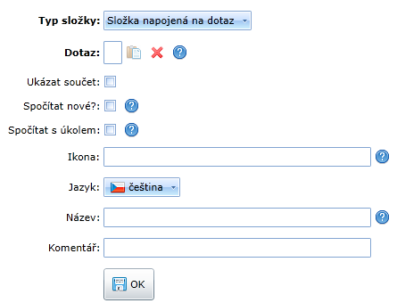 Kolonky Ukázat součet, Spočítat nové, Spočítat s úkolem umožňují určit, zda se pro příspěvky hledané daným dotazem mají počítat i dané statistiky. Typicky
