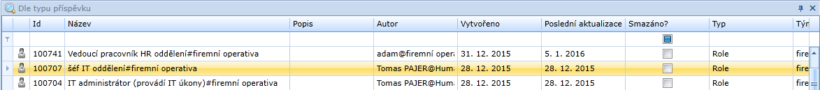 pádem nastavení platící pro role platí i pro uživatele, kteří rolemi disponují. Toto nastavení zůstává v systému uchováno, i když se uživatelé mění.