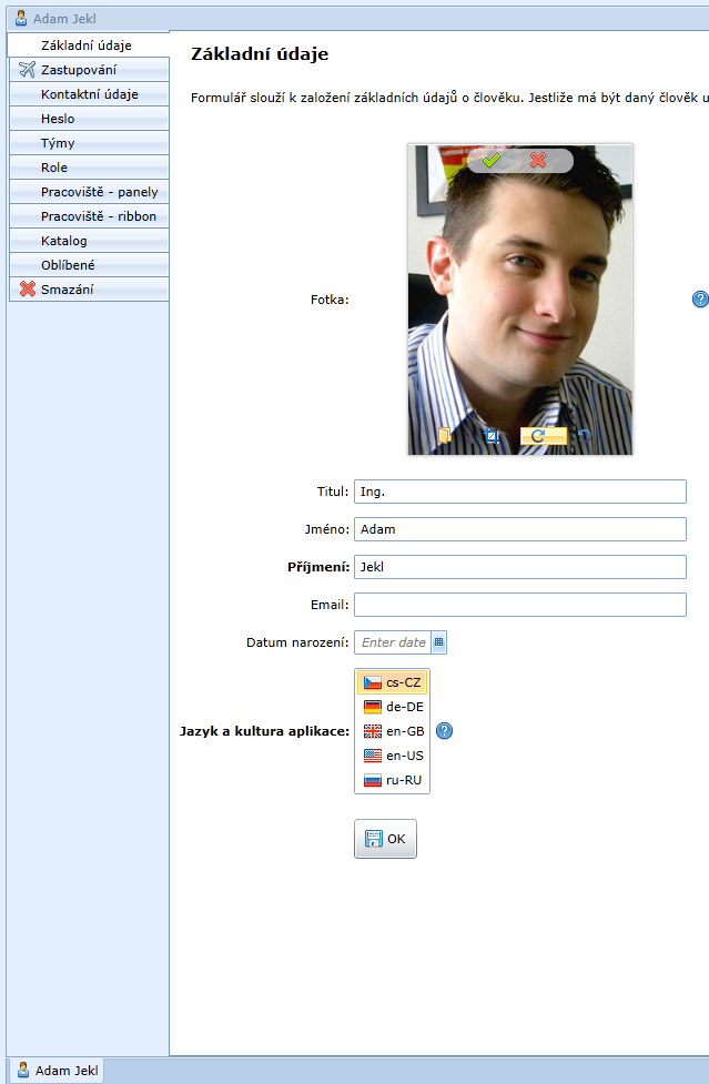 Vzhled pracoviště konkrétního uživatele je dán součtem nastavení, které platí pro: