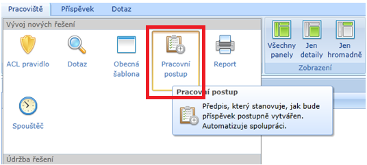 V záložce Pracoviště – Nový příspěvek klikněte na ikonu Pracovní postup.