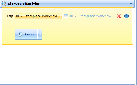 Složka Pracovní postupy všechny nebo pomocí složky Dle typu příspěvku a vybrat typ XCR workflow.