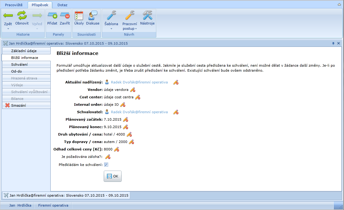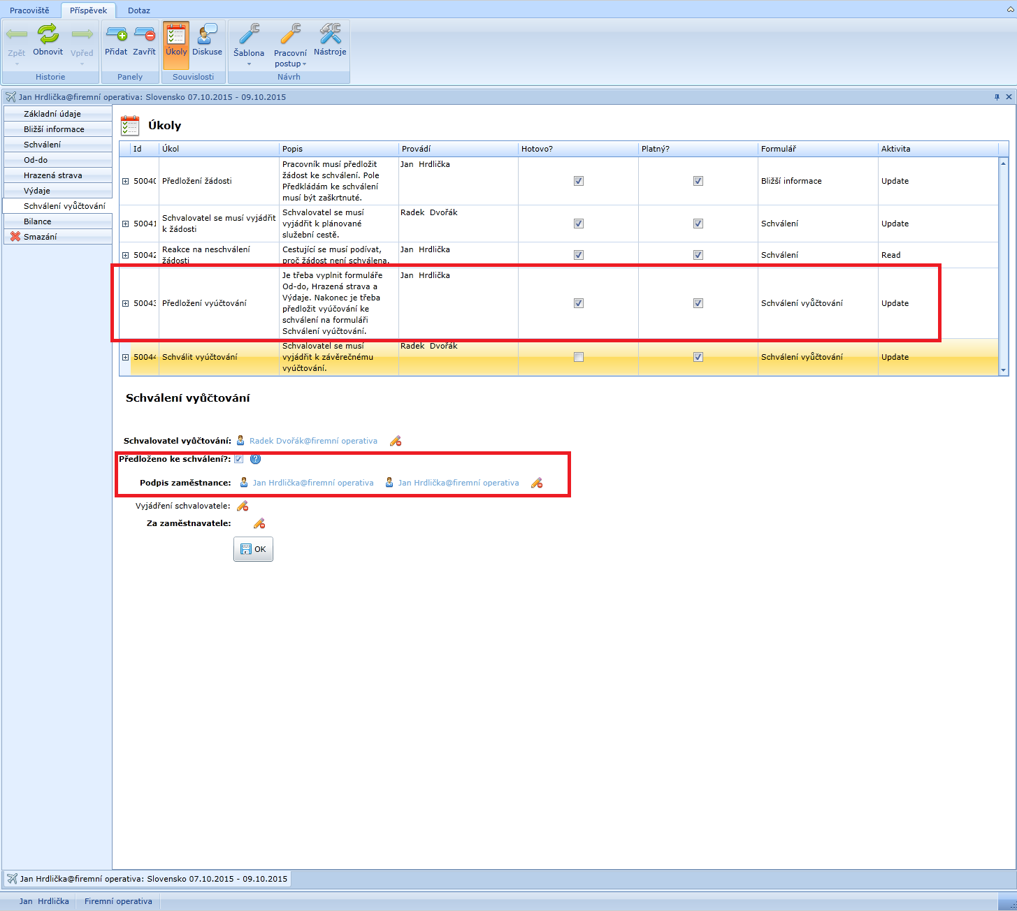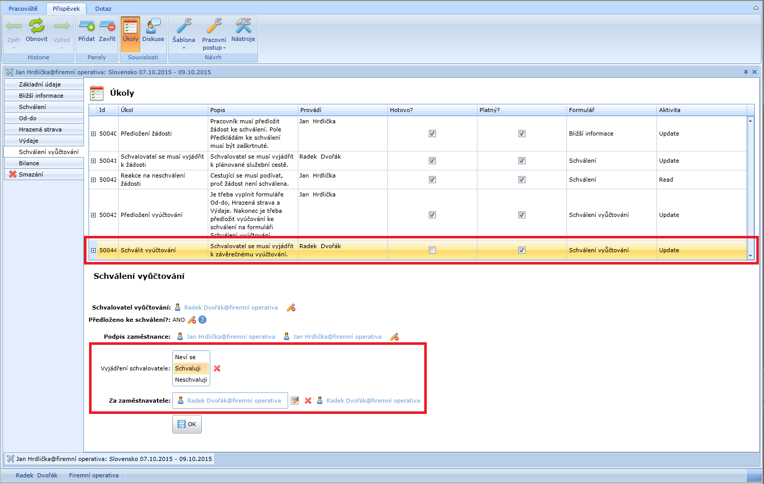 - radek dvořák@firemní operativa – jeho nadřízený a schvalovatel