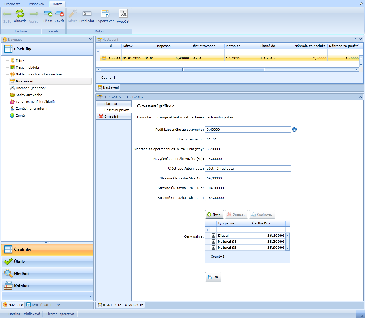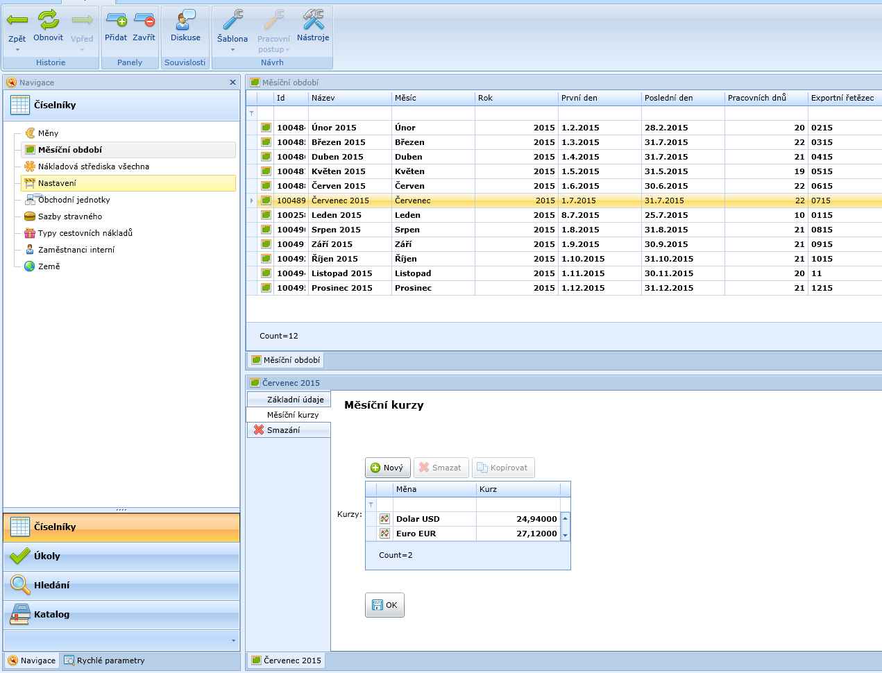 drinčevová@firemní operativa heslo 1234) dostupné v panelu Číselníky pomocí složky Měsíční období.