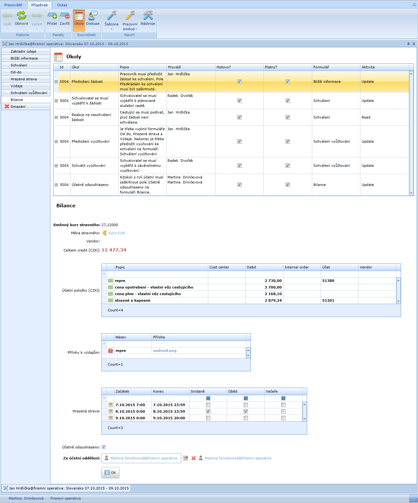 - martina drinčevová@firemní operativa – účetní a schvalovatel vyúčtování