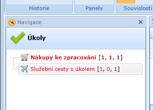 složka Služební cesty s úkolem, kterou má v panelu úkoly.